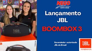 Acabamos de tornar a nossa mais poderosa caixa de som Bluetooth portátil ainda melhor. A silhueta icônica da JBL Boombox 3 tem uma nova e ousada atualização com uma alça de metal resistente e partes em silicone, tampas laterais duplas e tecido exclusivo à prova d'água e à prova de poeira. Ela também foi redesenhada por dentro, acrescentando um novo subwoofer que reproduz graves muito mais profundos e o potente JBL Original Pro Sound, tudo sem qualquer sinal de distorção E 24 horas de reprodução levam você desde o treino matinal até um fim de noite com seus amigos. E para um som praticamente ilimitado, conecte instantaneamente várias caixas de som com o aplicativo JBL Portable.